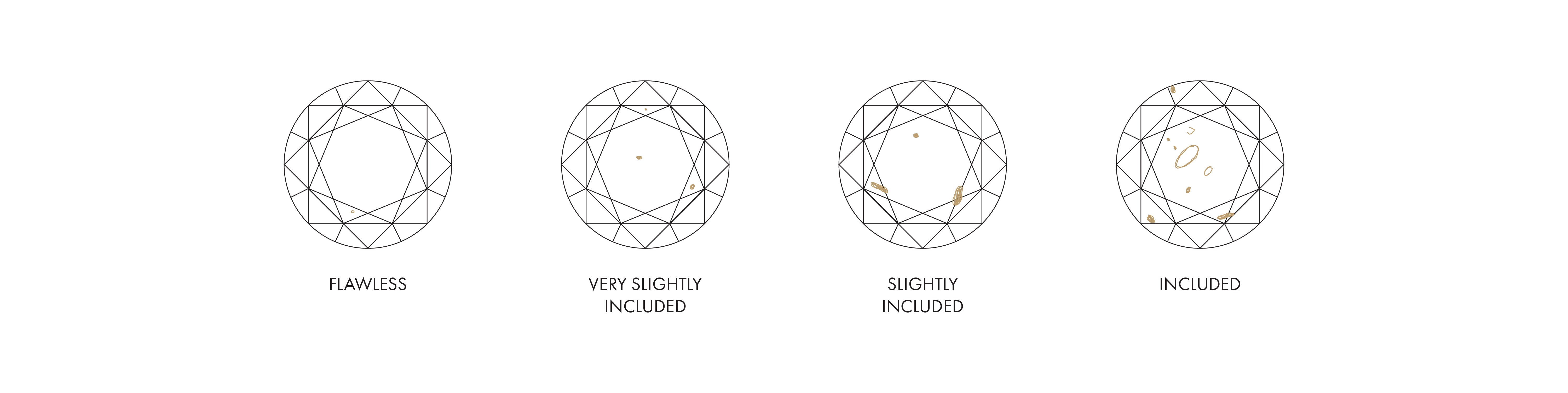 The clarity of a diamond refers to the presence of inclusions within the stone. Practically all diamonds contain naturally occurring internal inclusions. These are generally either foreign materials, such as carbon or other minerals which were trapped inside the diamond as it has grown around them, or clear inclusions such as fractures and tiny imperfections in the structure of the diamond. The size, nature, location and amount of inclusions determine a diamond’s clarity grade and affect its value. The diamonds that we source at Koi Jewels are strictly SI1 clarity and above, and we encourage prioritizing a stone with no eye-visible inclusions to guarantee the best sparkle and fire.
