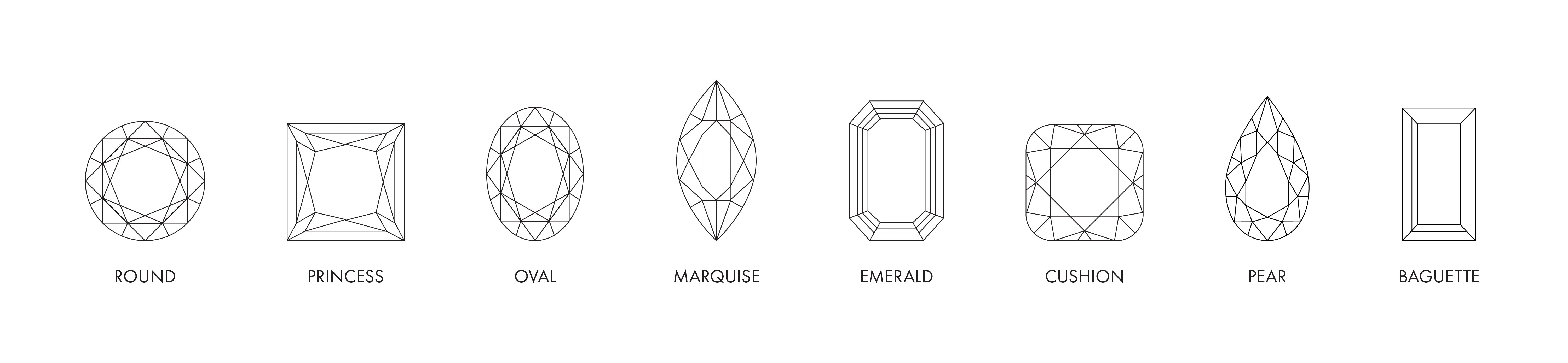 When choosing a diamond, the first decision to be made is what shape you prefer. Diamonds come in a wide range of shapes, with the most popular being a round brilliant cut – which most people will recognise as the classic shape for a solitaire style ring. Other common shapes include oval cut, emerald cut, pear cut, marquise cut, cushion cut, asscher cut, princess cut and trilliant or trillion cut, along with other more unusual shapes, each with their own unique qualities to suit different styles and preferences.